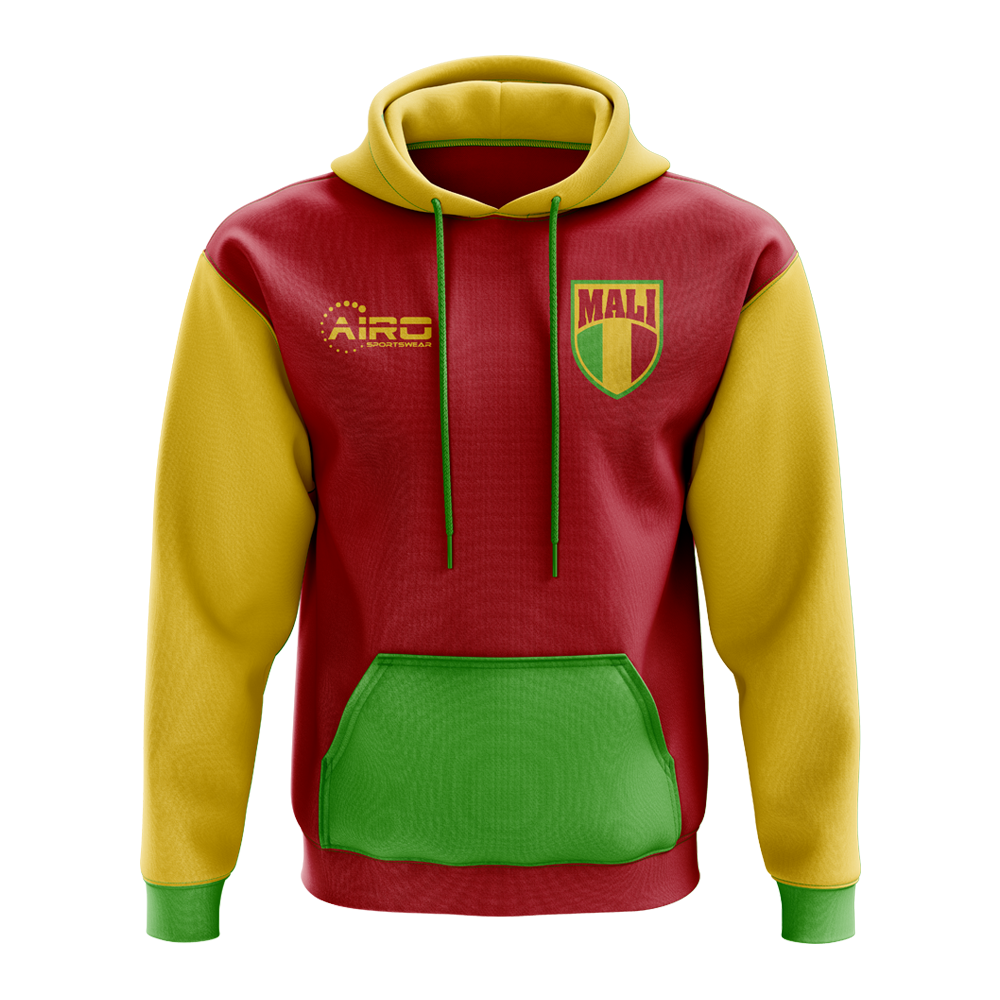 Show your love and wear this Mali Football Hoody with pride Manufactured by Airo Sportswear, this high quality cotton hoody is part of the Concept Range and is available to buy in a full range of adult and junior sizes.Featuring adjustable ties and sublimated badges, this popular hoodie is the perfect product for supporters of the Mali national team.